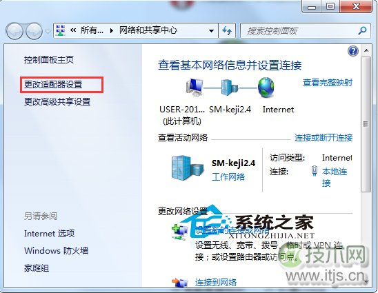 2、决网打开一个对话框,络问在这里选择更改适配器设置;