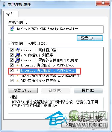 4、打开属性对话框,我们选择“ipv4”,然后点击属性按钮;