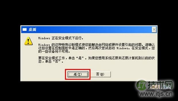 3. 进入后系统会弹出“Windows 正在安全模式下运行”的机蓝决方提示,请左键点击“是b2b供应网屏重”;