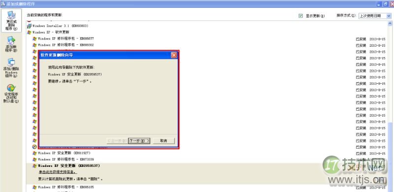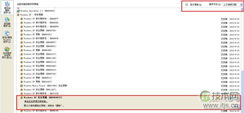 5. 在添加或删除程序页面,勾选“显示更新”--->找到“KB2859537”,选择“删除”;