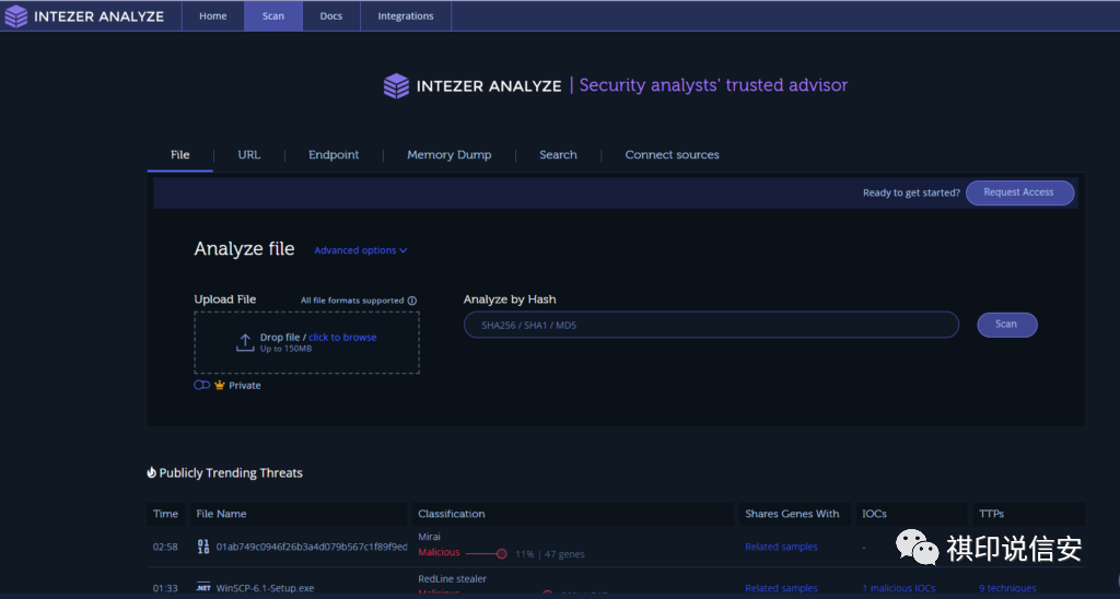 Intezer是一个旨在像经验丰富的安全分析师和逆向工程师一样分析和调查警报的平台。