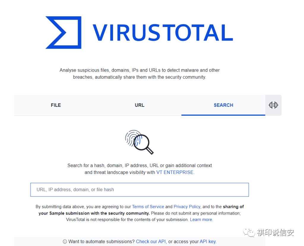 VirusTotal使用70 多个防病毒扫描程序和 URL/域阻止服务以及众多从分析内容中提取信号的工具来检查项目。任何用户都可以使用浏览器从计算机中选择文件并将其发送到 VirusTotal。该平台提供多种文件提交方法,包括主要公共 Web 界面、桌面安装程序、浏览器扩展和编程 API。在公众提交方式中,网络界面具有最高的筛选优先权。可以使用基于 HTTP 的公共 API 以任何编程语言进行提交。同样,可以通过多种方式提交 URL,包括 VirusTotal 网页、浏览器扩展和 API。