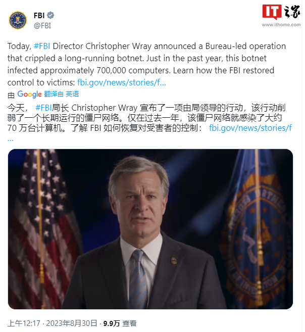 8 月 30 日消息,美国灭据美国联邦调查局(FBI)称,联络由美国领导的手多尸网一个多国行动摧毁了 Qakbot,这是国摧一种感染了全球超过 70 万台计算机的恶意软件。