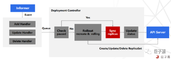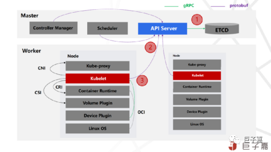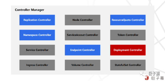5、Controller控制器,Kubernetes集控管理中心Controller Manager作为Kubernetes集控管理中心,负责集群的Node、Pod副本、服务端点(Endpoint)、命名空间(Namespace)、服务账号(ServiceAccount)、资源定额(ResourceQuota)的资源管理,并通过API Server接口实时监控集群的每个资源对象的状态,一旦发生故障导致系统状态发生变化,就会立即尝试修复到“期望状态”。