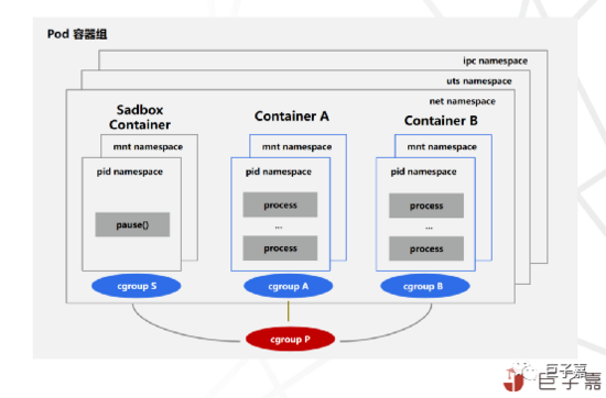 从POD的资源隔离来看,Pod容器主要由Linux提供的Namespace和Cgroup能力实现的,Namespace实现进程间隔离,Cgroup实现进程资源控制;其中Namespace由ipc 、uts 、net 、mnt 、pid 各种资源空间联合组成。