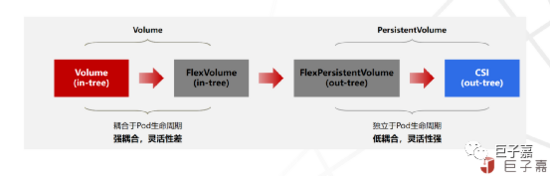 存储非常重要关键,同时也是生态与技术都比较复杂的领域,就linux、window两个生态支持的文件系统就多达20+。对于Kubernete存储架构设计一直在持续演进完善,为了尽可能多地兼容各种存储平台,Kubernetes以in-tree plugin的形式默认对接很多不同类型的存储系统;同时也支持基于FlexVolume和CSI插件以out-of-tree plugin来实现自定义存储服务。