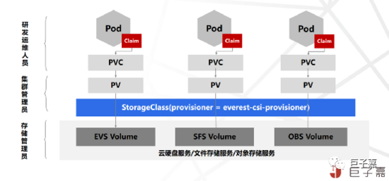 引入PV、PVC、StorageClass之后,资源管控更加灵活,团队职责更加明确,研发人员只需考虑存储需求(IO、容量、访问模式等),不需要关注底层存储细节;底层复杂的细节都由专业的集群管理与存储管理员来完成。
