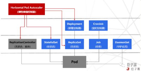 Deployment与ReplicaSet:替换原来的ReplicationController对象,管理部署无状态应用,Deployment管理不同版本的ReplicaSet,ReplicaSet管理相同版本的Pod,通过Deployment调整 ReplicaSet的终态副本数,控制器会维持实际运行的Pod数量与期望的数量一致,Pod 出故障时会自动重启或恢复。StatefulSet:管理部署有状态应用,创建的Pod拥有根据规范创建的持久型标识符。Pod迁移或销毁重启后,标识符仍会保留。如每个Pod有序号,可以按序号创建更新或删除;Pod有唯一网络标志(hostname)或独享的存储PV,支持灰度发布等。DaemonSet:管理部署每个节点运行的守护任务,如监控、日志收集等。新加入的节点也运行,移出节点是需要删除。也可以通过标签的指定运行节点。Job与Cronjob:Job是一次性任务,可创建一个或多个Pod,监控Pod是否成功运行或终止;根据Pod状态设置重复次数、并发度、重启策略。Cronjob是定时调度的Job,可以指定运行时间、等待时间、是否并行运行、运行次数限制。在Kubernetes生态中,还有一些提供额外操作的第三方工作负载,同时也可以通过使用CRD自定义工作负载,还有就是Device Plugin驱动的硬件工作负载。