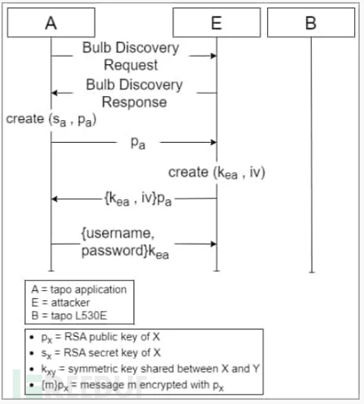 智能灯泡缺陷第一个漏洞涉及 Tapo L503E 上的灯泡不正确身份验证,允许攻击者在会话密钥交换步骤中冒充设备。缺陷窃此高严重性漏洞(CVSS v3.1 评分:8.8)允许相邻攻击者检索 Tapo 用户密码并操纵 Tapo 设备。黑客