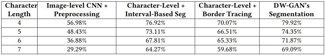 总体来看,DW-GAN可以在不超过3次尝试的情况下破解CAPTCHA,破解1831个产品页面的CAPTCHA验证码花费了76分钟。