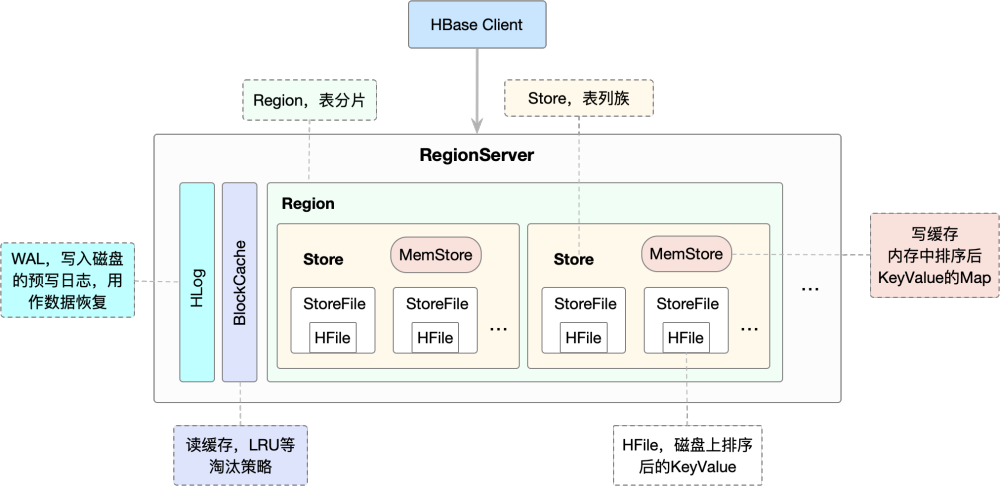 RegionServer是写优HBase系统中最核心的组件,主要负责用户数据写入、浅谈读取等基础操作,写优其内部结构如下所示: