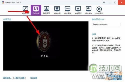 7、然后点击应用到系统(如下图),你的开机动画便成功更改成现在所展现的黑屏处动画了。