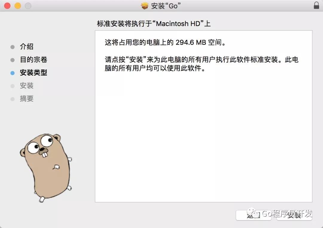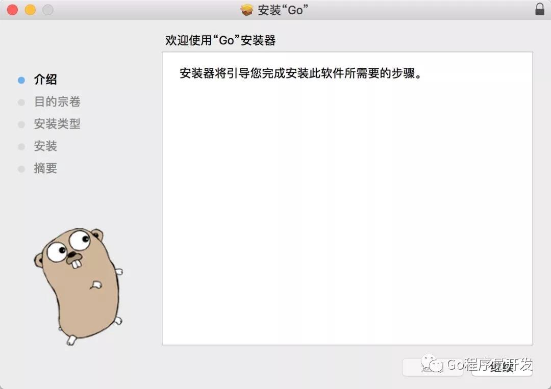 2、培训打开此pkg文件 并跟随提示来安装Go工具