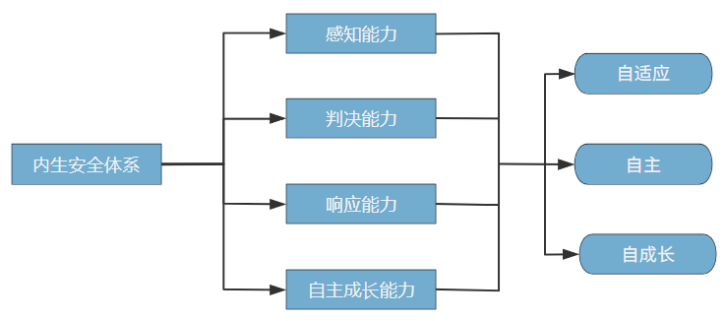 内生安全可以理解为从仿生学的角度,将网络系统功能与生物系统功能进行融合,构建一个基于生物系统的、组件高度融合的网络系统,使其具有自适应、自主和自成长这三大特性的安全能力。