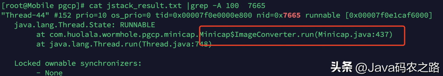 复制jstack <pid> |grep -A 200 <nid>1.来定位具体代码