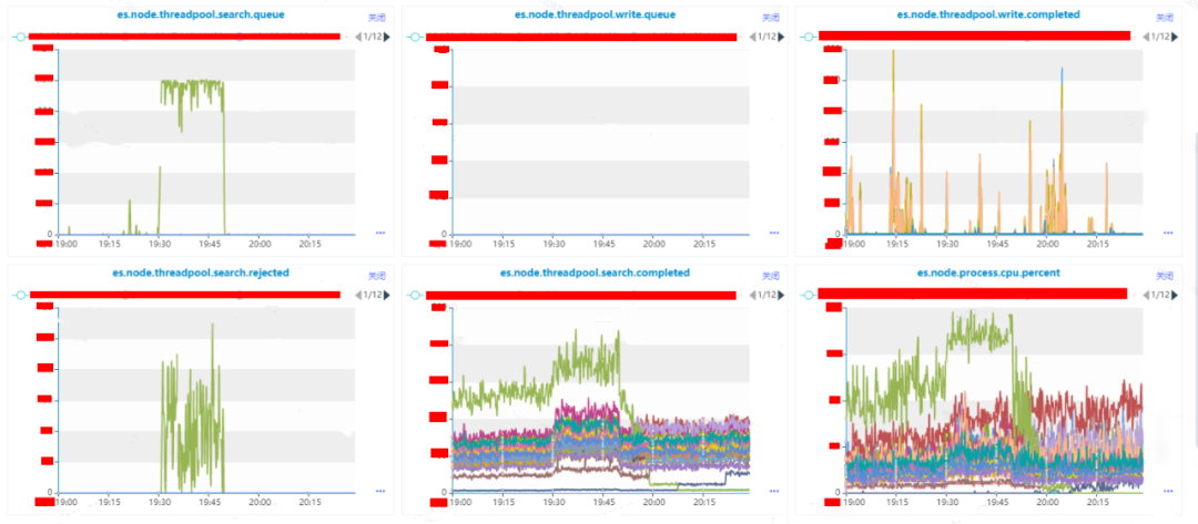 实例A的指标es.node.threadpool.search.queue的值长时间达到了1000,说明读请求的队列已经满了。实例A的指标