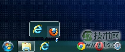 此时,程序图标会缩小以平铺方式显示,任务栏上最多显示4个图标(按从左至右的顺序显示前4个,可以通过交换位置来改变显示图标),但每个分组可存放的图标数量不受影响。分组后运行中的图标会在前段显示,同时所有程序窗口预览时会合并在一起。