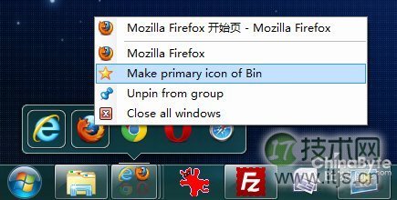 其次,组长本身不能从组里分离出去,组员则可以随意移动。但我们可以更换组长来达到分离IE的目的,在其他图标上右键选择“Make primary icon of Bin”来改换组长。