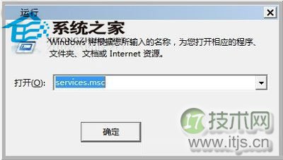 2、主题在打开的显示运行对话框中输入“services.msc”字符命令并按回车键;