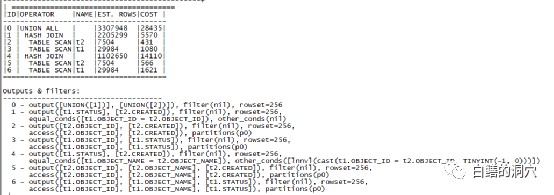 而如果我们把Or的表连接条件去掉,则又走回了HASH JOIN这种性能比较好的连接方式。当表的数据量很大时这两种连接的性能差异很大。