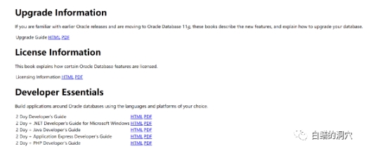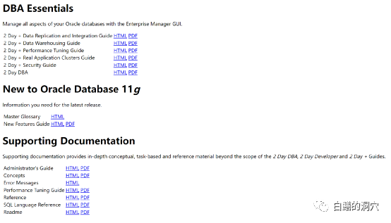和我们的友商,相比,在这方面我们做的确实还很不够。比如Oracle,除了正式的官方文档外,还提供了大量的最佳实践文档,这些文档在Oracle.com和metalink上都可以找到,此外Oracle还针对高可用提供了大量的MAA(最大可用架构)的实践性的文档。这方面,IBM也提供了大量的redbook,供客户参考。下面几页是Oracle11g这个十多年前的数据库产品的官方文档中为了让用户快速掌握11.2产品的文档清单,这仅仅是11.2这个版本产品文档中的一部分,就已经如此丰富了: