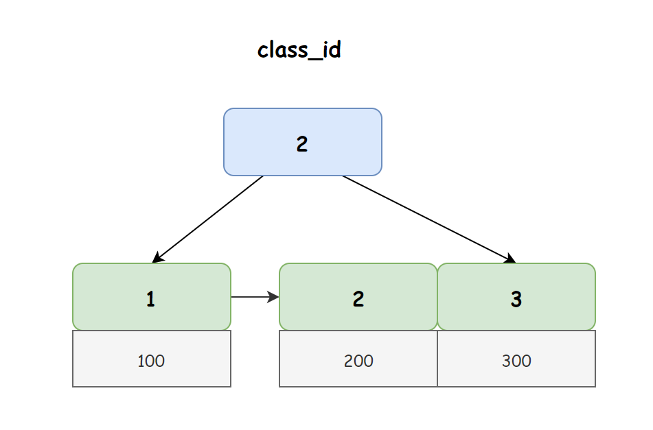 非聚簇索引非聚簇索引在 InnoDB 引擎中,索引索引也叫二级索引,和非以上面 student 表为例,到底在 student 中非聚簇索引 class_id 对应 B+ 树如下图所示: