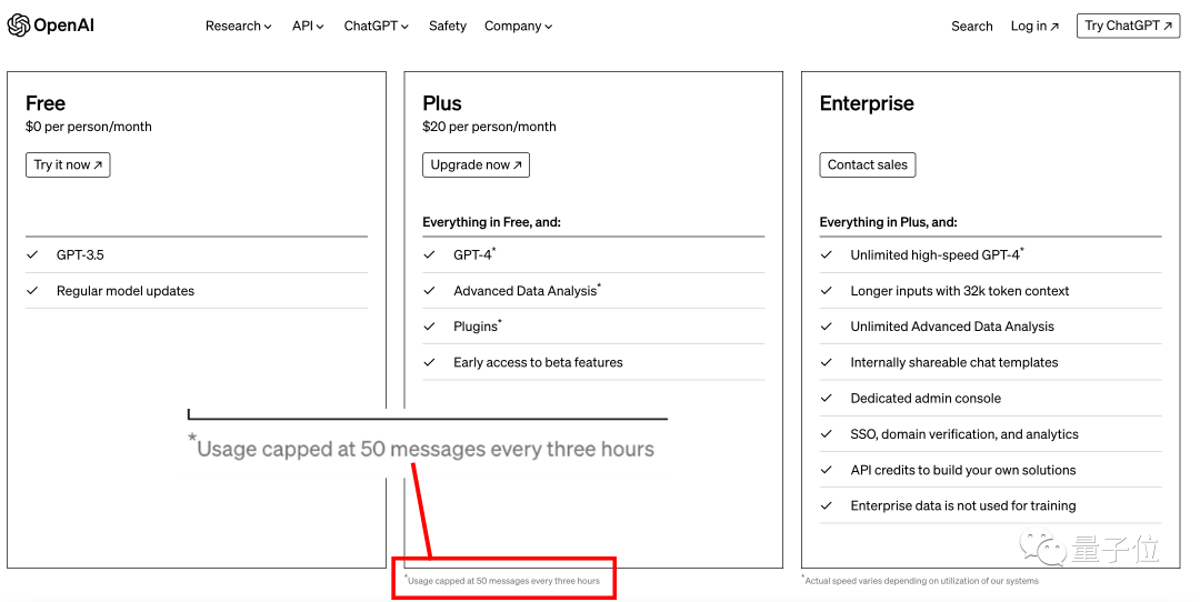 但在OpenAI的用户计划比较页面中,这一提示还没有被删去。
