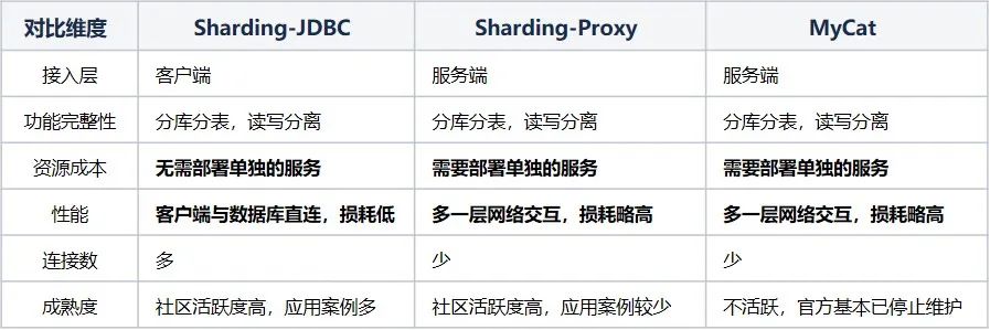 我们对比了几款比较常见的支持分库分表和读写分离的中间件。