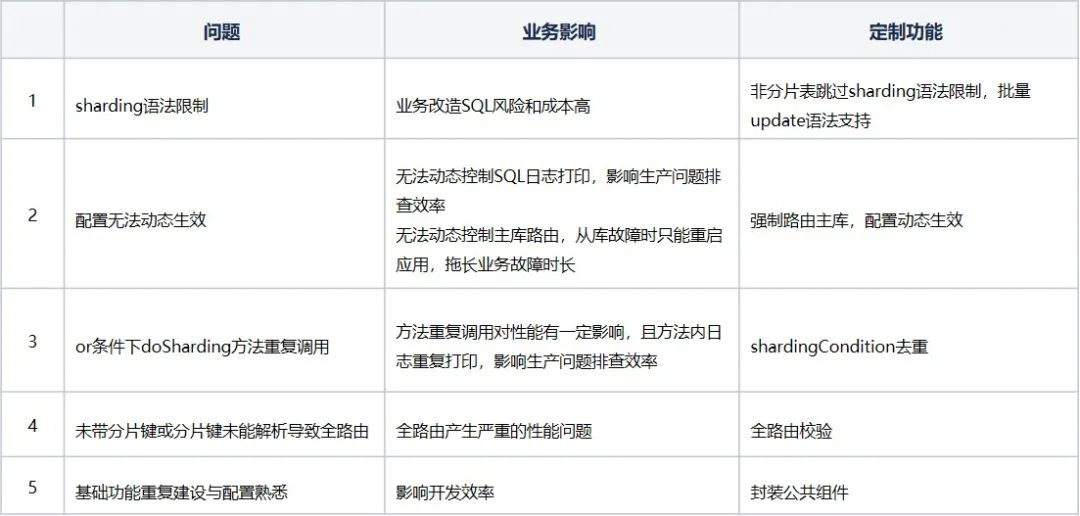 Sharding-JDBC作为轻量化的增强版的JDBC框架,相较其他中间件性能更好,接入难度更低,其数据分片、高防服务器读写分离功能也覆盖了我们的业务诉求,因此我们在业务中广泛使用了Sharding-JDBC。但在使用Sharding-JDBC的过程中,我们也发现了诸多问题,为了业务更便捷的使用Sharding-JDBC,我们对源码做了针对性的定制开发和组件封装来满足业务需求。