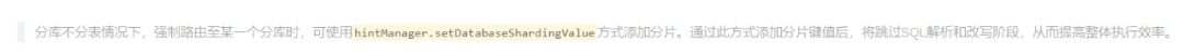 复制org.apache.shardingsphere.core.strategy.route.inline.InlineShardingStrategy#doSharding public Collection<String> doSharding(final Collection<String> availableTargetNames, final Collection<RouteValue> shardingValues, final ConfigurationProperties properties) { RouteValue shardingValue = shardingValues.iterator().next(); //ALLOW_RANGE_QUERY_WITH_INLINE_SHARDING设置为true,直接返回availableTargetNames,而不是根据RangeRouteValue计算 if (properties.<Boolean>getValue(ConfigurationPropertyKey.ALLOW_RANGE_QUERY_WITH_INLINE_SHARDING) && shardingValue instanceof RangeRouteValue) { return availableTargetNames; } Preconditions.checkState(shardingValue instanceof ListRouteValue, "Inline strategy cannot support this type sharding:" + shardingValue.toString()); Collection<String> shardingResult = doSharding((ListRouteValue) shardingValue); Collection<String> result = new TreeSet<>(String.CASE_INSENSITIVE_ORDER); for (String each : shardingResult) { if (availableTargetNames.contains(each)) { result.add(each); } } return result; }1.2.3.4.5.6.7.8.9.10.11.12.13.14.15.16.17.(2)4.1.1的官方文档虽然说Hint可以跳过解析和改写,但在我们上面解析引擎的源码解析中,我们并没有看到有对Hint策略的额外跳过。事实上,即使使用了Hint分片SQL也同样需要解析重写,也同样受Sharding-JDBC的语法限制,这在官方的issue中也曾经被提及。