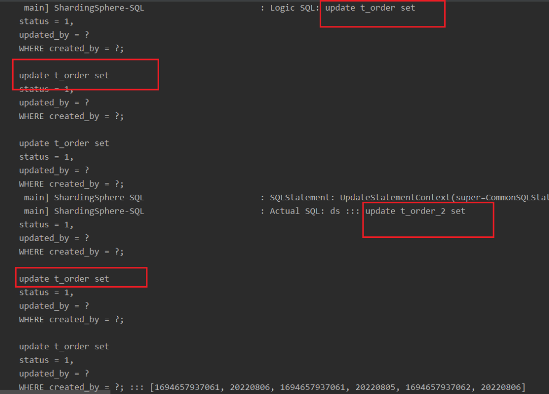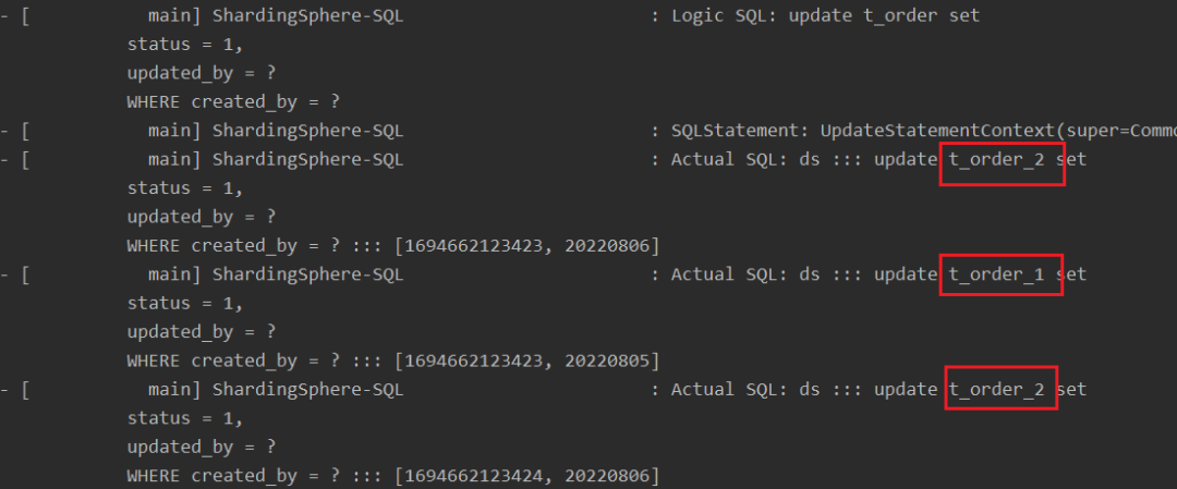 复制org.apache.shardingsphere.shardingjdbc.executor.PreparedStatementExecutor#init public void init(final ExecutionContext executionContext) throws SQLException { setSqlStatementContext(executionContext.getSqlStatementContext()); //兼容批量update 分库分表后同一张表的情况 判断是否存在EXECUTION_UNIT_LIST 存在则使用未去重的List进行后续的操作 if (MapUtils.isNotEmpty(executionContext.getExtendMap())){ Collection<ExecutionUnit> executionUnitCollection = (Collection<ExecutionUnit>) executionContext.getExtendMap().get(EXECUTION_UNIT_LIST); if(CollectionUtils.isNotEmpty(executionUnitCollection)){ getInputGroups().addAll(obtainExecuteGroups(executionUnitCollection)); } }else { getInputGroups().addAll(obtainExecuteGroups(executionContext.getExecutionUnits())); } cacheStatements(); }1.2.3.4.5.6.7.8.9.10.11.12.13.14.改造完成后,批量update中的每条SQL都可以被正确路由执行。