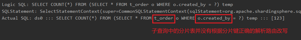 原因:无法正常解析子查询中的分片表,导致业务错误