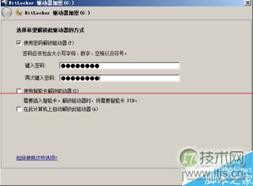 3、加密勾选使用密码解锁驱动器,硬盘并输入密码。点击下一步