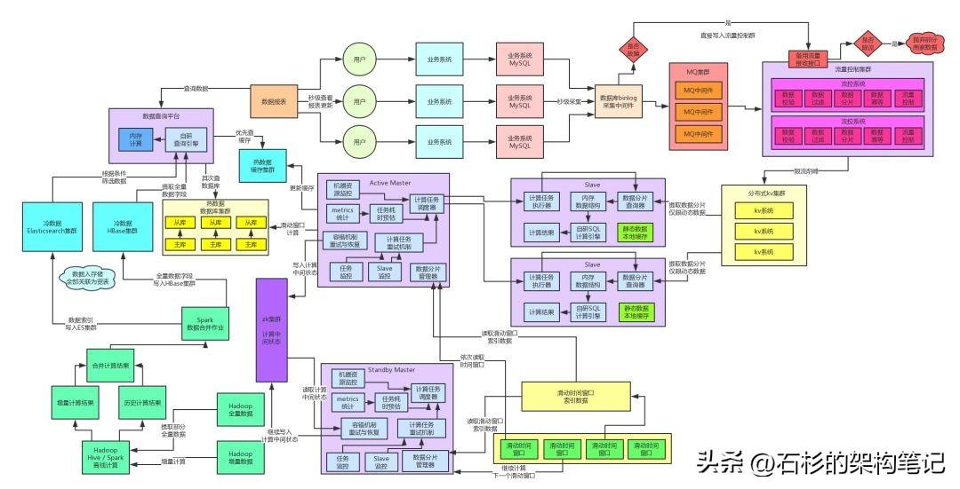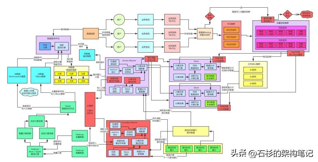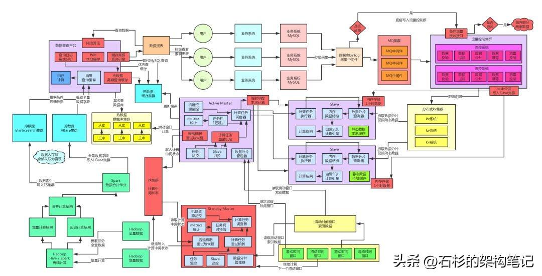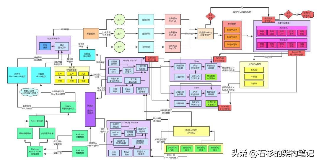 冷数据基于HBase+Elasticsearch+纯内存自研的可用查询引擎,解决了海量历史数据的架构高性能毫秒级的查询。热数据基于缓存集群+MySQL集群做到了当日数据的优秀几十毫秒级别的查询性能。最终,实践整套查询架构抗住每秒10万的百亿并发查询请求,都没问题。流量路高