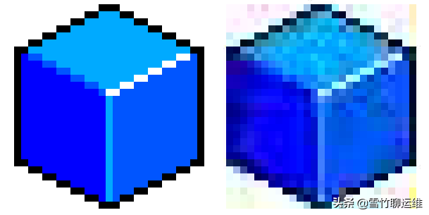 另一方面,具有锐利点、清晰边缘和大面积一种颜色的图像(例如矢量标志、像素艺术等)在另存为 JPEG 时看起来不太正确。