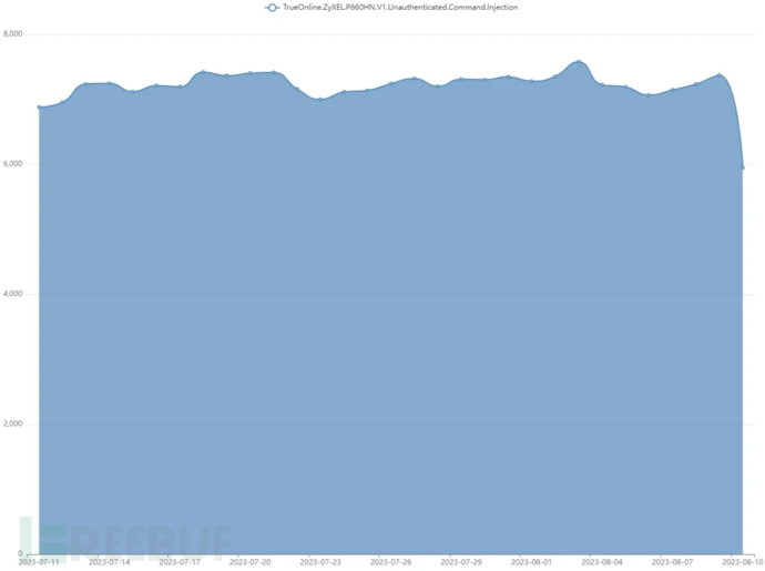 Fortinet 指出虽然目前还尚不清楚观察到的攻击活动中有哪一部分成功感染了设备,但自 7 月份以来,攻击活动一直保持稳定。值得一提的是,CISA 近期发布了 CVE-2017-18368 在野外被利用的情况,并将该漏洞添加到其已知利用漏洞目录中,要求联邦机构在 2023 年 8 月 28 日前修补 Zyxel 漏洞。