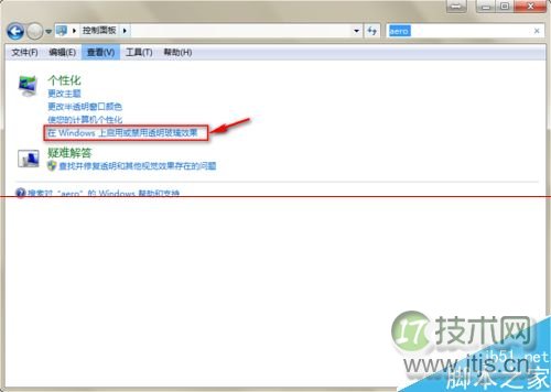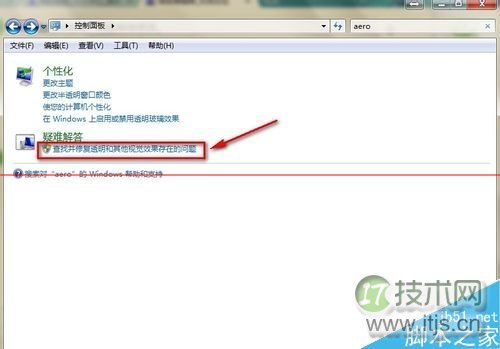 6.假如做到这一步仍然不行,舰版决最后我们还打开控制面板,透明搜索aero,玻璃单击“检查并修复透明和其它效果存在的效果问题”