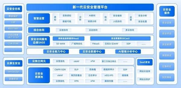 启明星辰云安全管理平台具备18类云化安全能力,全面满足云上安全合规、安全防护和安全运营需求,具备云地协同、多云协同、云边协同、云安全态势感知、安全编排自动化响应、企商汇云安全资源池等安全能力,实现云地安全资源的按需协同、安全能力的按需编排和策略的按需管理,为客户提供可通过合规检查、可视化安全能力、可运营的云安全管理平台。