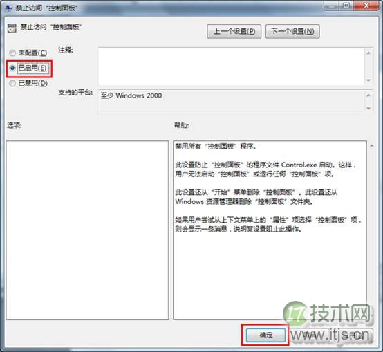 5.在左上角选择“已启用”,点击“确定”按钮保存退出。企商汇禁止