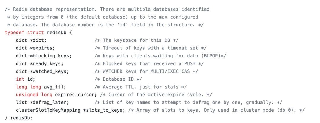 Redis 以 redisDb为中心存储,redis 7.0 源码在 https://github.com/redis/redis/blob/7.0/src/server.h: