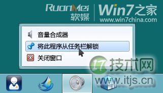 Windows 7的这一功能非常人性化,在不影响其他应用程序声音输出的情况下,可以很方便的对其他程序进行声音控制,而不是简单粗暴的对整个系统静音。假如你觉得这个功能很方便,可以将其Pin到任务栏,这样你就拥有了一个自己的音量控制面板,随时调节系统声音状态,工作娱乐两不误。
