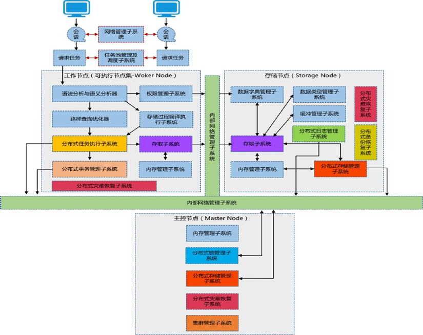 从模块上看,虚谷数据库的不同角色包含下列模块: