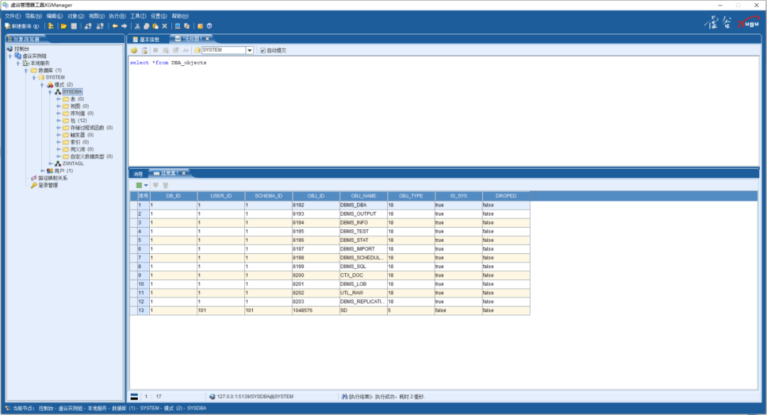 (6)生态易用性虚谷数据库提供了一系列基于 JAVA 技术的图形化客户端工具,用户可通过不同工具与数据库服务端进行交互,包括:虚谷数据库管理工具 XuguManager、虚谷数据库迁移工具 XuguMigrator、虚谷数据库集群监控软件 XuguCM 等。比较有意思的是,虚谷和大多传统数据库厂商一样,采用自研工具的路子,他们自己提供的XuguManager颇有Oracle-SQL Developer的风格,应该也是和他们宣传的Oracle兼容性配套的吧。另外他们也提供了一个DBever的管理器插件,可以通过DBever直连虚谷数据库,这应该是为了兼容MySQL生态考虑的。