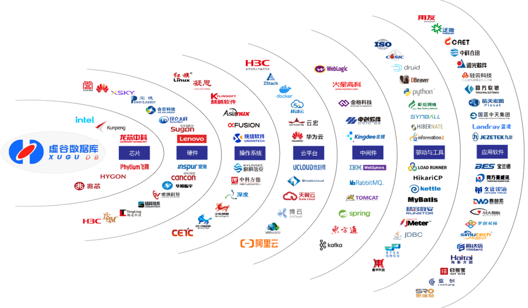 经过多年合作共建,虚谷数据库已完成从芯片、硬件、操作系统、云平台、中间件、驱动与工具及应用软件的全生态体系构建,打消用户在选择使用上的诸多疑虑。