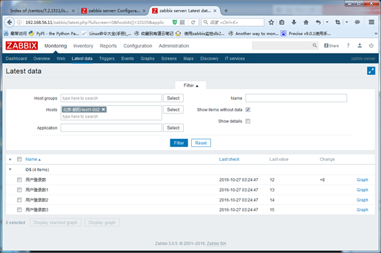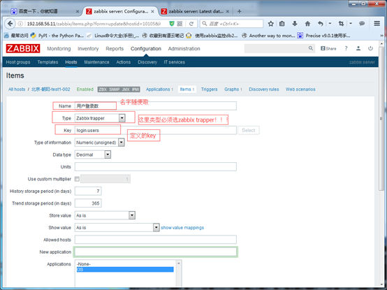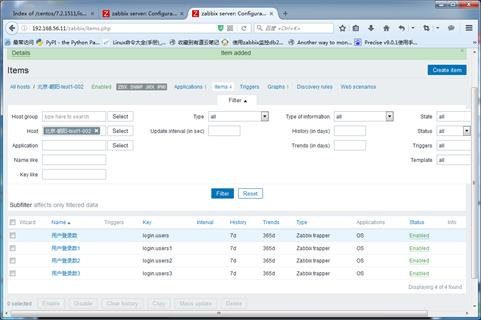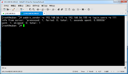 [root@muban ~]# zabbix_sender -z 192.168.56.11 -s 192.168.56.100 -k login.users -o $(w|sed 1,2d|wc -l)使用zabbix_sender批量发送