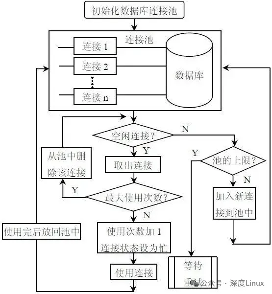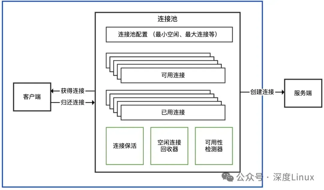 网络IO较多数据库的负载较高响应时间较长及QPS较低应用频繁的创建连接和关闭连接,导致临时对象较多,GC频繁在关闭连接后,会出现大量TIME_WAIT 的TCP状态(在2个MSL之后关闭)2. 使用连接池流程