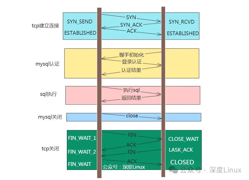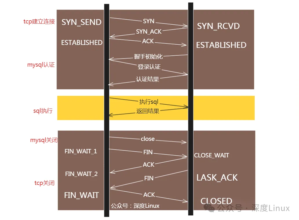 TCP建立连接的三次握手MySQL认证的三次握手真正的SQL执行MySQL的关闭TCP的四次握手关闭可以看到,为了执行一条SQL,却多了非常多我们不关心的网络交互。