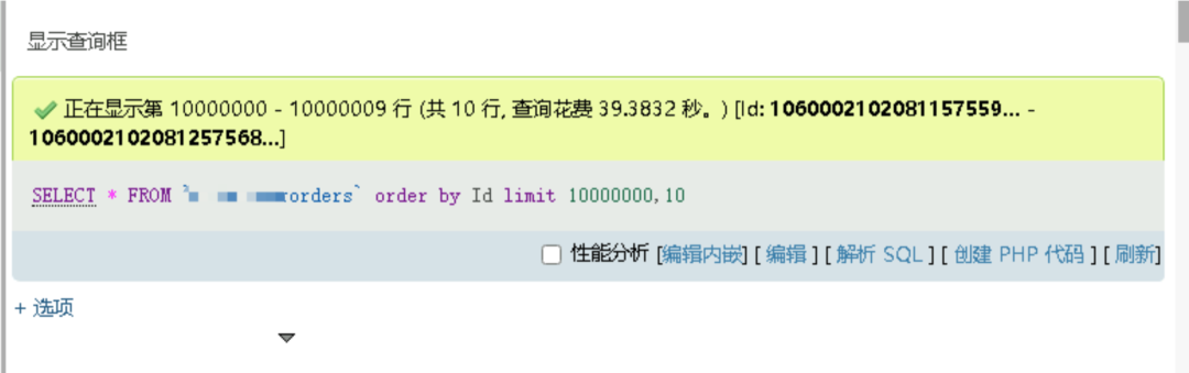 对于千万级的单表数据查询,小编我刚刚也使用了一下分页查询,起点位置在 10000000,也截图给大家看看,查询耗时结果:39 秒!
