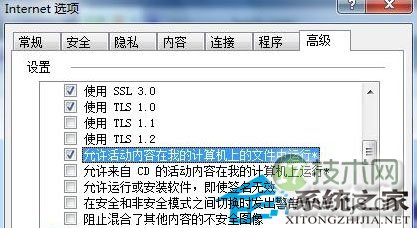 三、最后在IE弹出来的“Internet选项”对话框中,云南idc服务商切换至“高级”标签页中。然后在高级选项卡里勾选“允许活动内容在我的计算机上的文件中运行”。