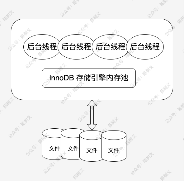 目前使用最广泛的是 InnoDB 存储引擎,其体系架构分为三大块,分别是:后台线程、内存池、文件,其体系架构如下图所示。